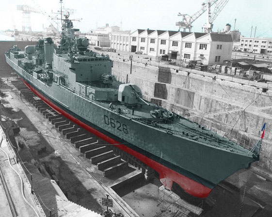 Vauquelin annonce le chauffeur, c’est à moi de descendre. Sur le quai, je laisse le car repartir, je pose un instant mon sac et ma valise et regarde le navire à bord duquel je vais passer quelques années. La proue face au quai, la marque D628 sur le flanc : c’est bien ça. Je reprends mes affaires et emprunte le pont flottant sur lequel est amarré le navire, passe la coupée, salue la poupe comme on me l’a enseigné et me présente au second maître de quart.