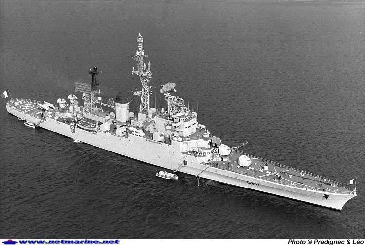 Les 63000 CV des machines propulsent les 3750 tonnes du navire. La plage avant est balayée par les embruns. On sent les claquements de la coque sur les vagues. Le compas indique que le navire fait cap plein nord. On se rapproche de la Bretagne. Je retourne au PC ASM, c’est à mon tour de faire la ronde sécu. Dans la coursive, tout n’est que vibrations. Mais ce n’est rien à côté du local machine avant. J’en viens. Les gens hurlent pour se parler, leur tenue est trempée de sueur. Ma vérification faite, je ne m’attarde pas. Arrivé au local torpilles, les portes étanches donnant sur les ponts milieux sont ouvertes. Des bouffées d’air du large s’engouffrent et rafraîchissent ce tronçon de coursive. J’en profite pour faire un tour dehors. Le vent et les embruns balaient le pont milieu, aussi je reste derrière les tubes lance torpilles.