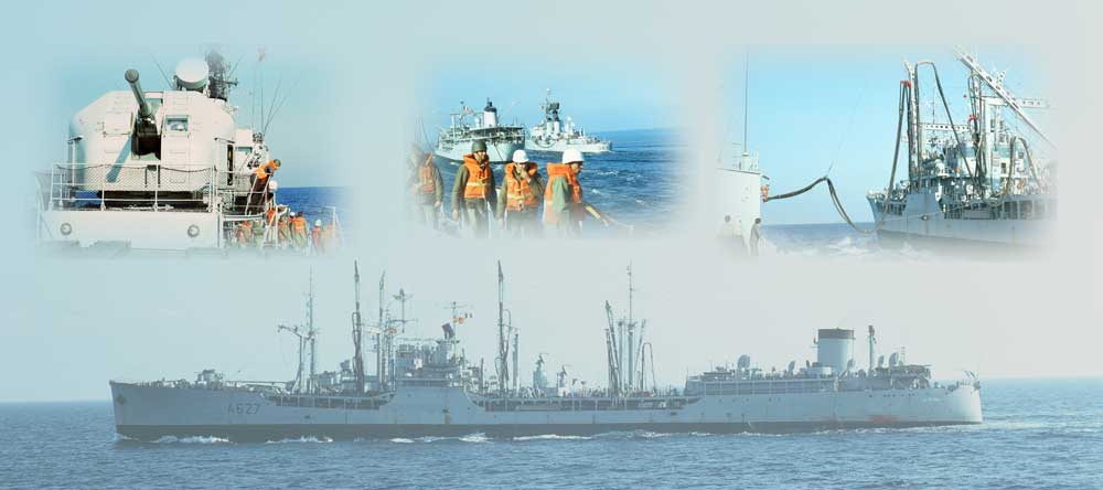 Au cours de cette descente vers le sud, les exercices s'enchaînent à un rythme soutenu. Outre le fait de courir après le sous-marin Espadon nous avons droit à un ravitaillement à la mer (RAM) avec la Seine. Mon poste de ravitaillement se fait, comme bien d'autres postes sur la plage arrière. Il n'y a rien à faire sinon que de regarder... Et agir au cas où ...