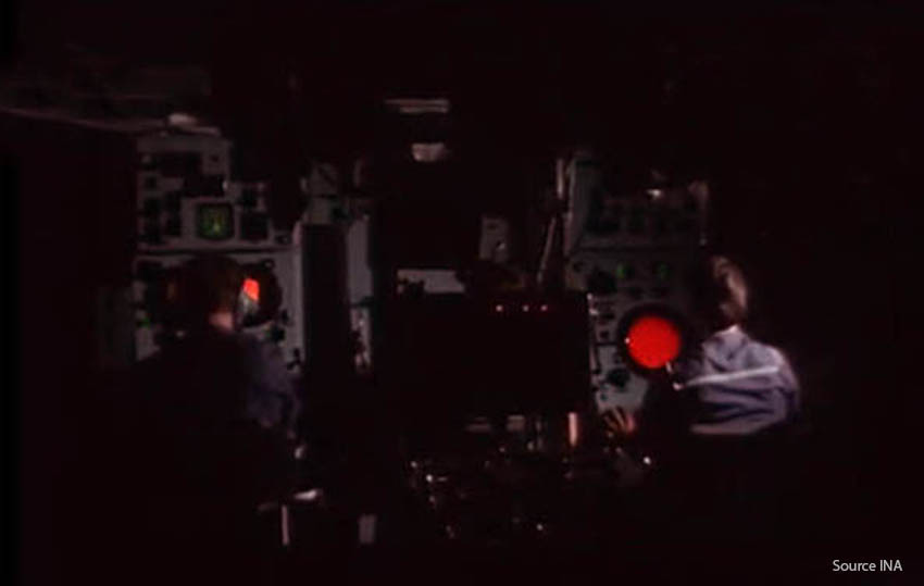 Debout ! Il est quatre heures moins le quart. Il a fallu me faire répéter plusieurs fois pour me faire émerger. Péniblement, je m’extrais de ma bannette, m’habille et me traîne vers la caf. Arrivé au niveau du local torpilles, j’ouvre une porte étanche, mets le nez dehors et inhale un peu d’air du large. La nuit est noire, ciel est dégagé et constellé d’étoiles. Je n’en n’avais jamais vu autant. Ce spectacle, je ne le reverrai qu’en plein désert bien des années plus tard. Loin des lumières du continent, mes yeux ne sont plus pollués par des éclairages omniprésents. C’est féerique. Je fais provision de ces images et me promets de remettre ça dès que possible. Pour l’instant, il me faut vite aller prendre un café-saucisson avant de retourner au PC ASM. Une calme et studieuse ambiance règne devant les sonars. Le SNLE est toujours au bout du pointeur.