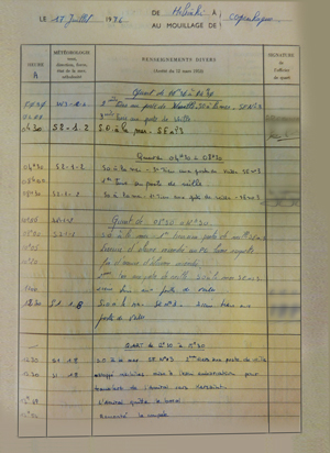 aucun badaud ne s’est encore aventuré pour assister à l’accostage. Au dégagé du poste de manœuvre, je me rends directement à la coupée. Je suis de quart au bureau des