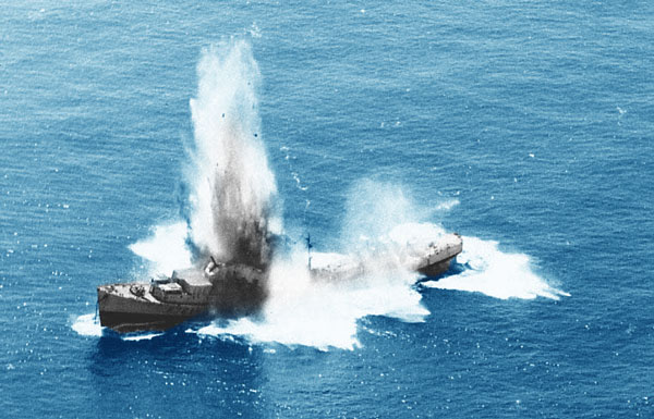 l’année précédente. Et a déjà servi de cible. Mais n’a pas coulé. A cette époque, les navires en fin de vie
